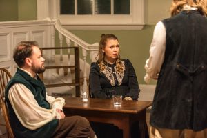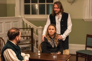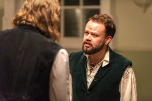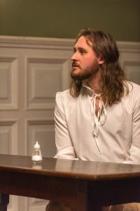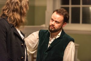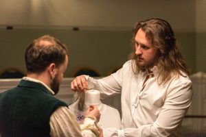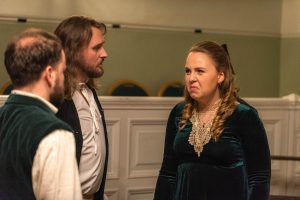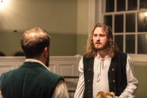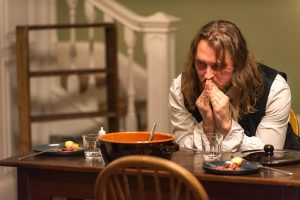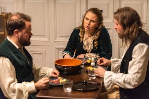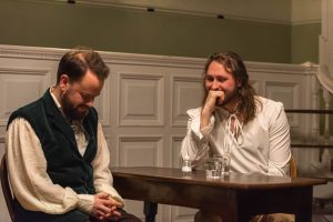 Meat by James McDermott is a bold and thought-provoking historical drama that explores identity, desire, and sexuality in rural England. Set in Diss, Norfolk, the play tells the little-known true story of Robert Carleton, a 17th-century tailor and his secret relationship with his apprentice Jon Lincoln. The story takes a dark turn when Jon’s fiancé, Mary, comes for dinner with the two tailors.